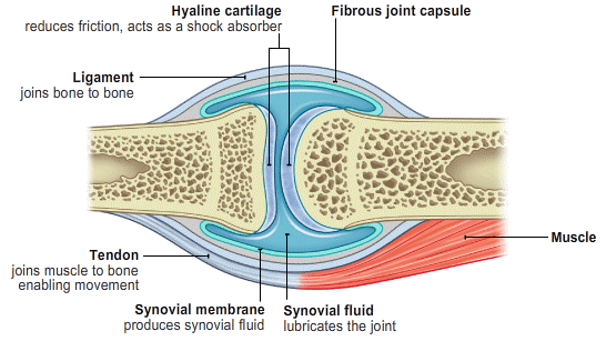 - Nutrisi dibawa ke tulang rawan oleh cairan sinovial.